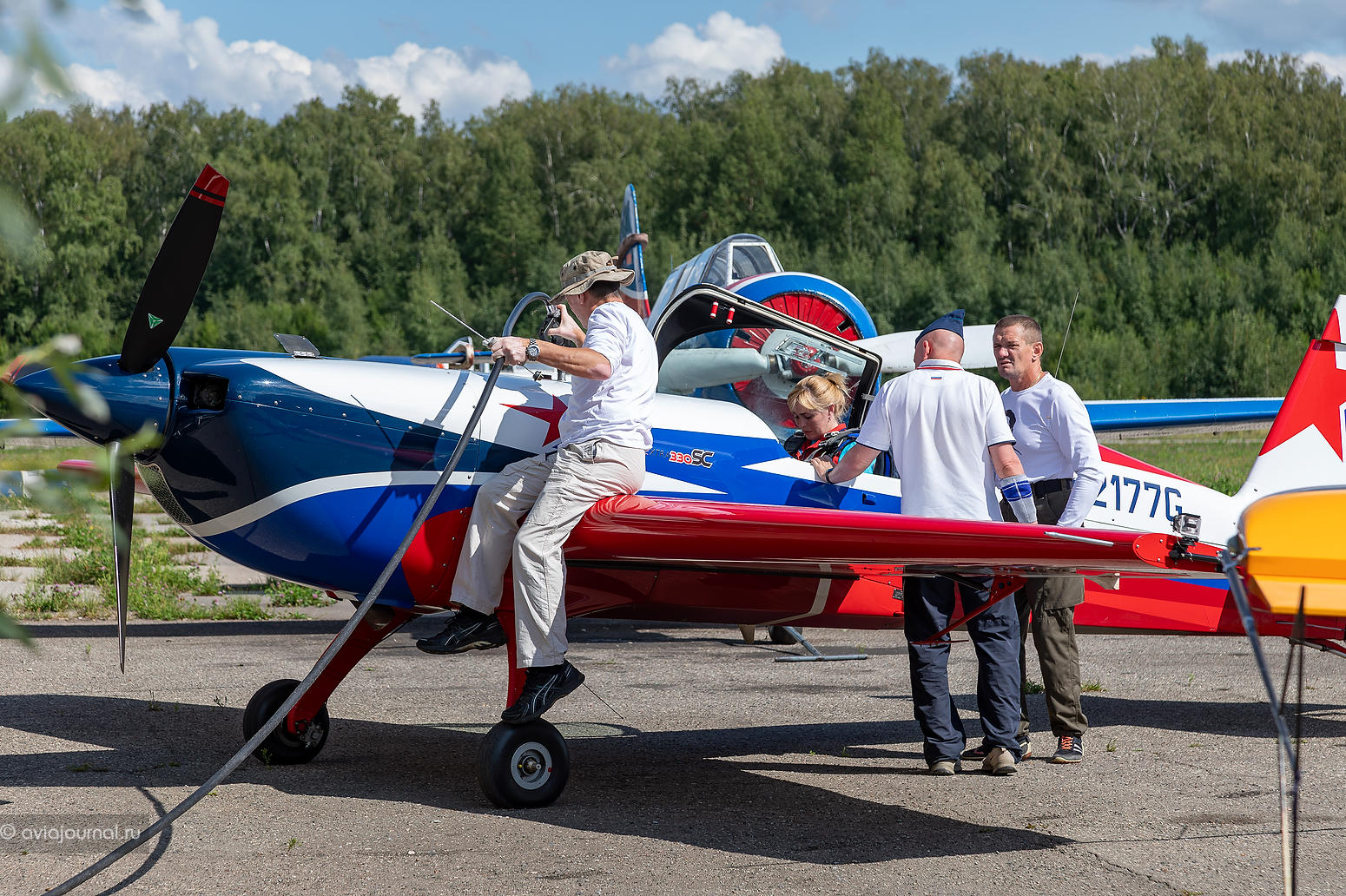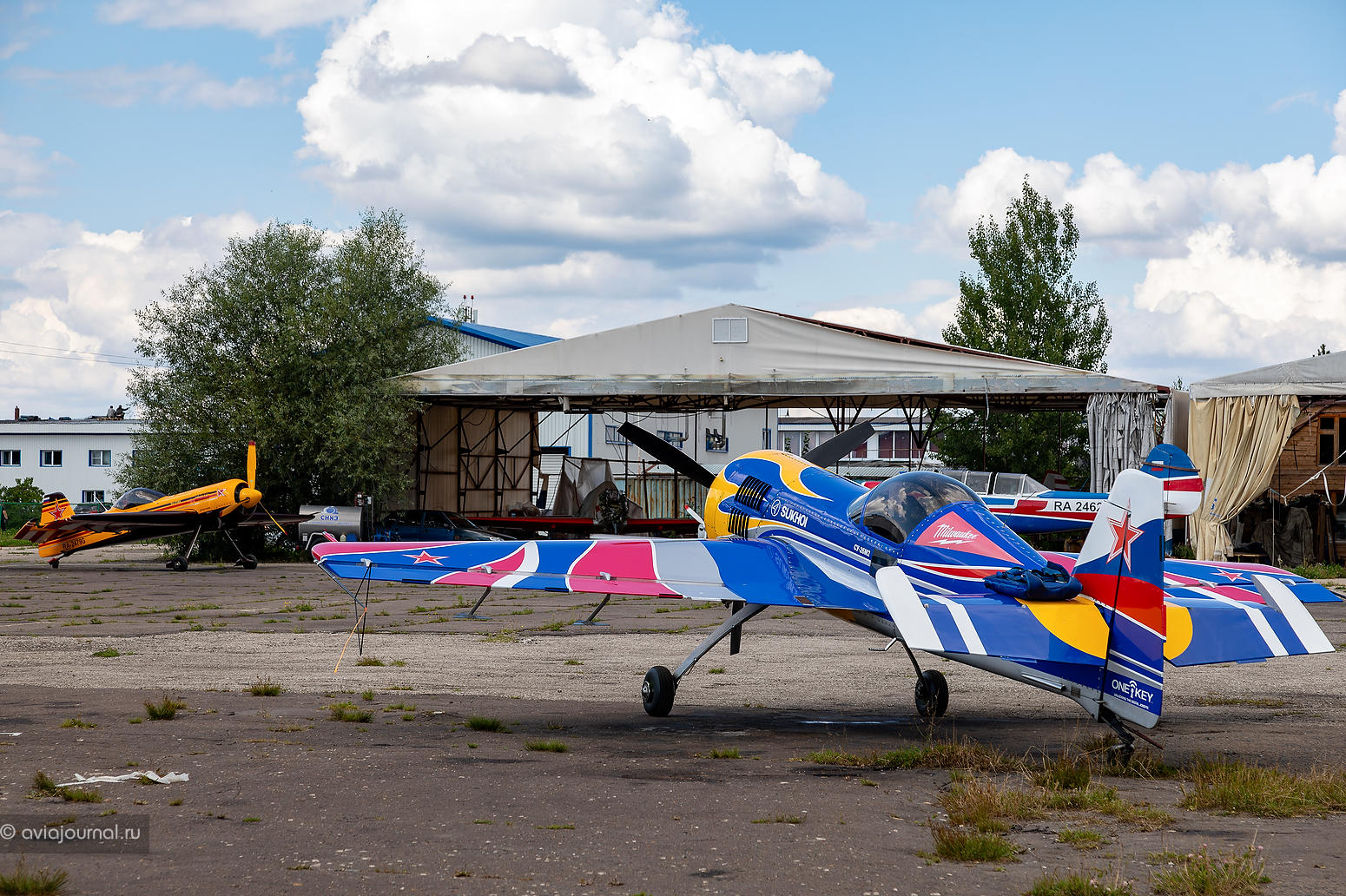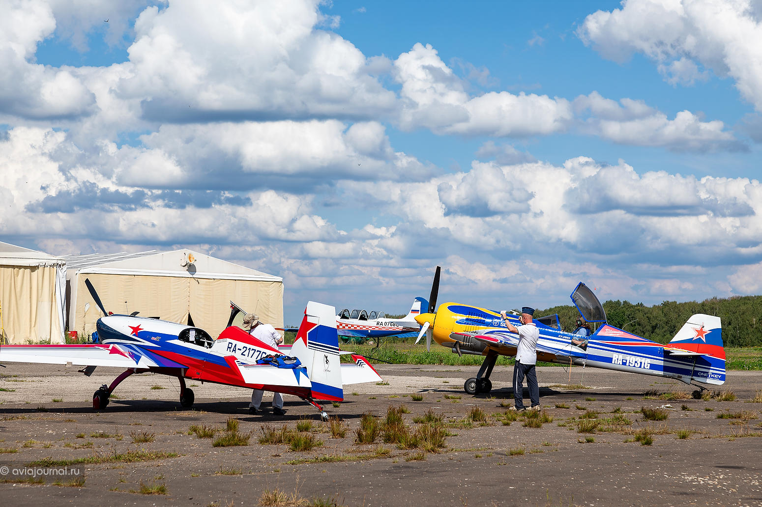 Новоиспечённый победитель Кубка Москвы по самолётному спорту 2023 года Андрей Якимов выполнял пилотаж на не менее ярком жёлтом Extra 330SC RA-3017G. Василий Плотников, Владимир Гавриленко, Сергей Гончаров, Михаил Мамистов и Светлана Капанина делили между собой кокпит красно-бело-синей Extra 330SC RA-2177G.