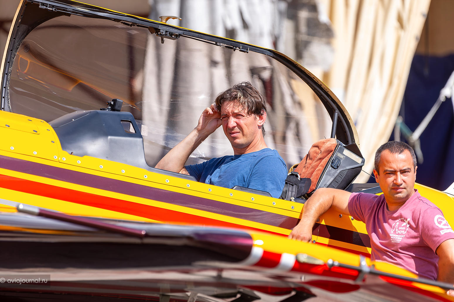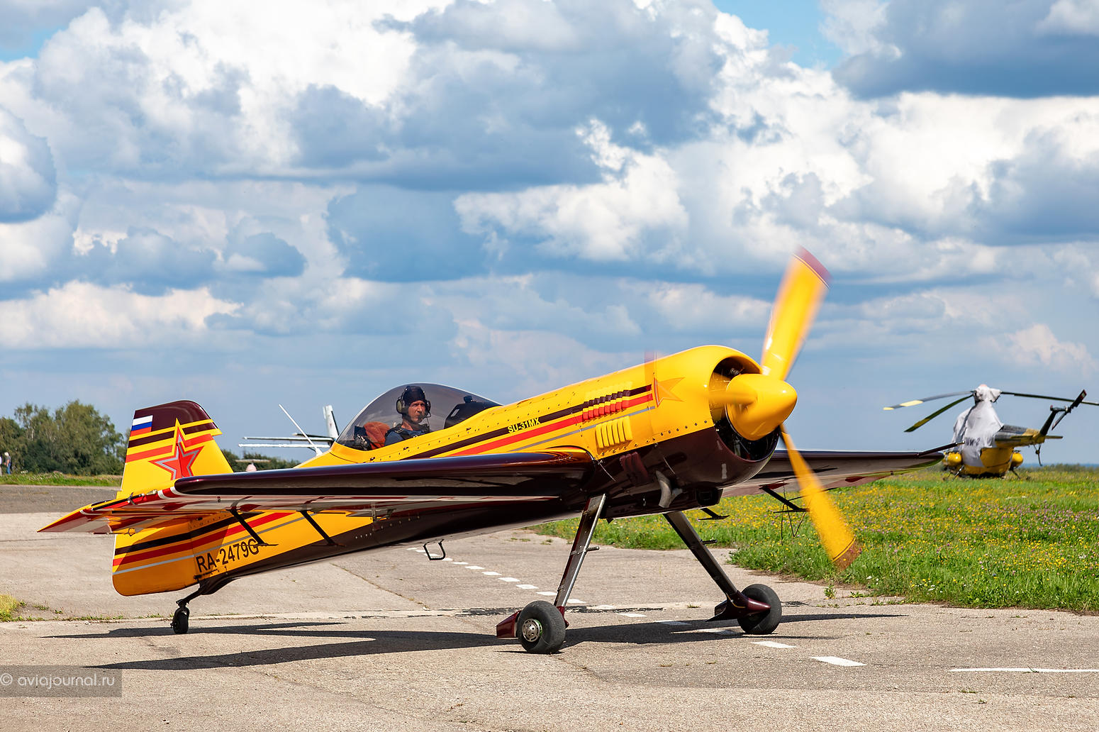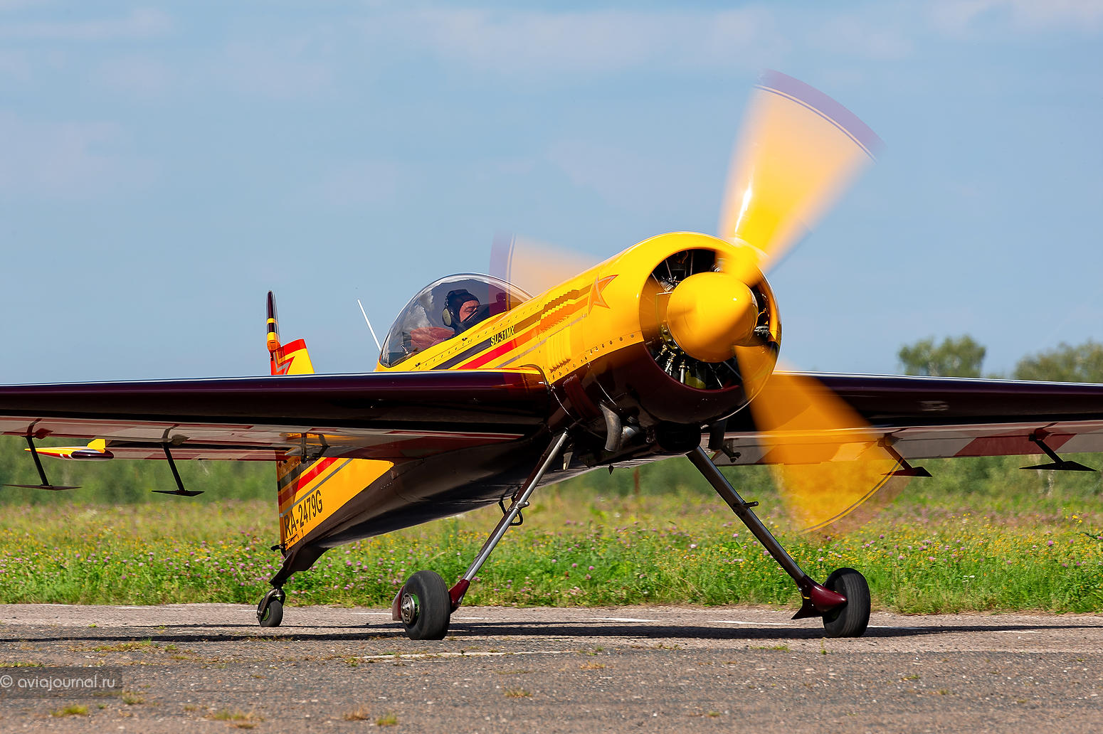 Новоиспечённый победитель Кубка Москвы по самолётному спорту 2023 года Андрей Якимов выполнял пилотаж на не менее ярком жёлтом Extra 330SC RA-3017G. Василий Плотников, Владимир Гавриленко, Сергей Гончаров, Михаил Мамистов и Светлана Капанина делили между собой кокпит красно-бело-синей Extra 330SC RA-2177G.